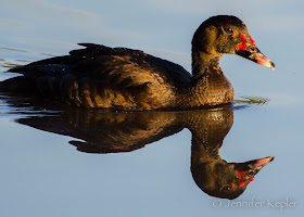 | 1 of 2 muscovy ducks at Falls Lake Recreation area. |
