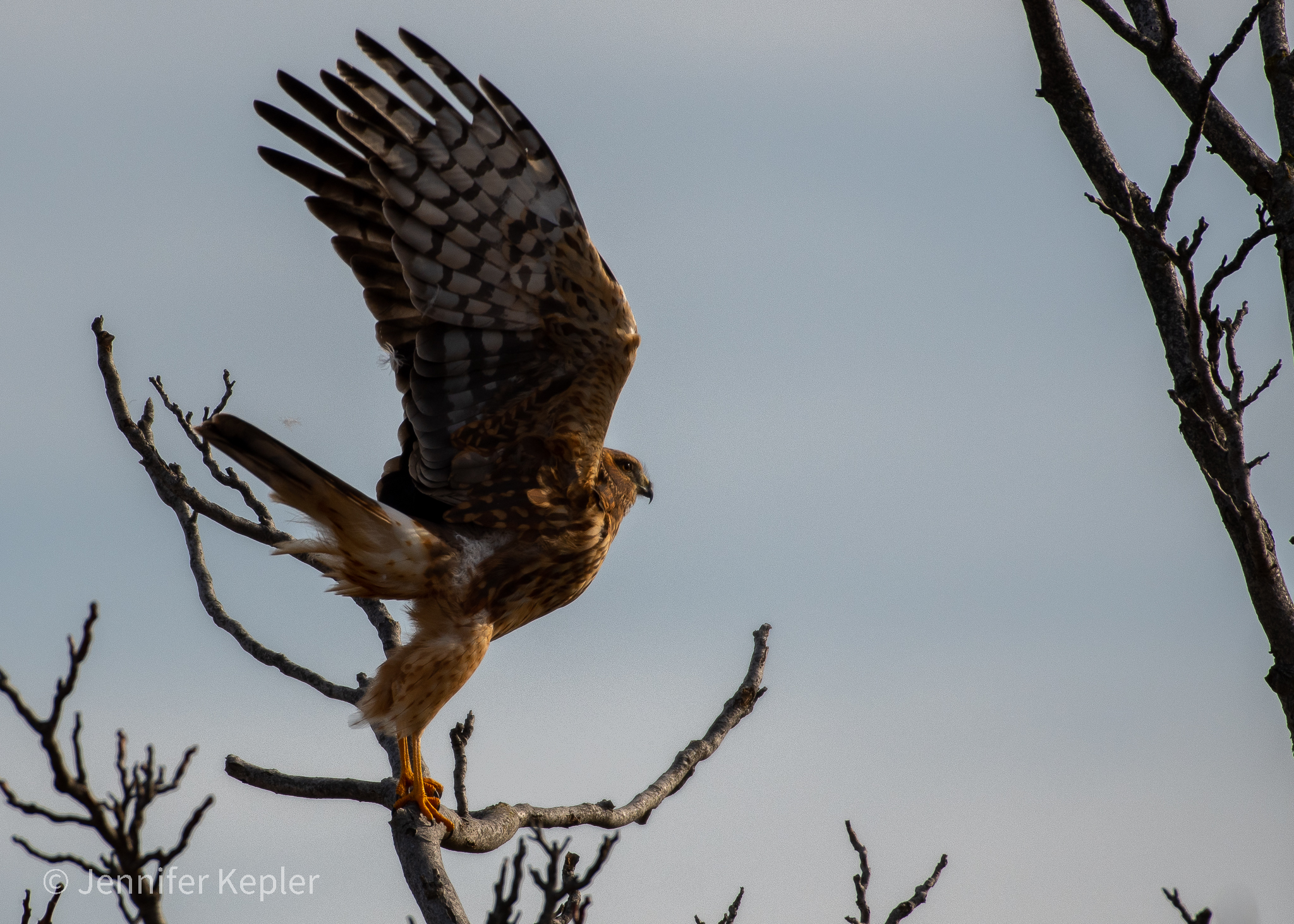 I spotted this female harrier up the path I was walking. I rarely see sitting harriers, especially in trees. So this was a treat. I remained at a distance and on the path, but she had other plans.